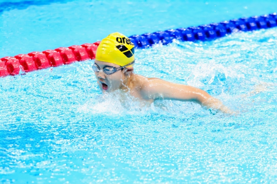 本次赛事面向6-15岁青少年,设置8个年龄组别,项目兼具“普惠性”与“专业性”,覆盖蛙泳蹬腿、爬泳打腿等适合低龄选手的基础项目,也涵盖50米、100米蝶泳、蛙泳、仰泳、自由泳等传统泳姿竞赛项目。比赛现场,选手们展现出饱满的竞技状态,出发台上利落起跳,泳道内奋力划水,临近终点时全力冲刺,场边观众的呐喊助威声此起彼伏,亚运场馆内满是青春拼搏的活力。